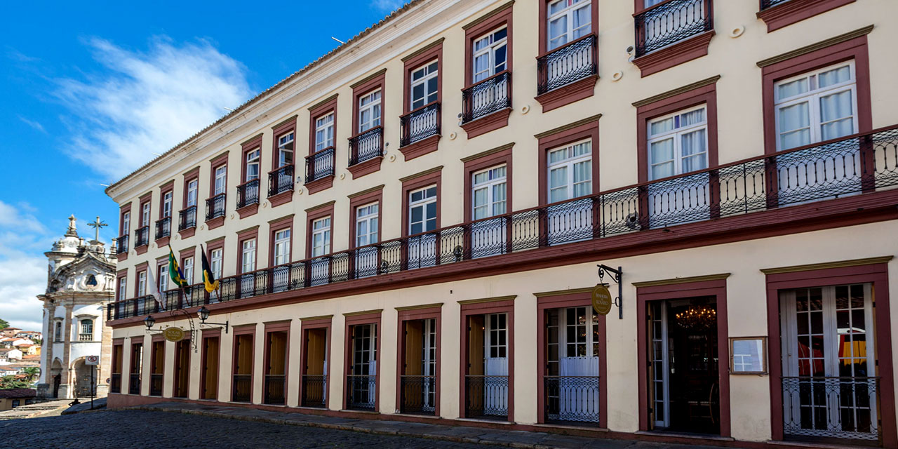 Cravado na bela e histórica cidade do ouro, em Minas Gerais, este magnífico hotel, datado do século XIX, impressiona tanto pelo conjunto de portas que compõem a sua fachada, quanto pelas grades inglesas que circundam a propriedade. A exuberante vista para as igrejas locais também chamam a atenção, já que além do deslumbre, a sensação de voltar ao passado se torna ainda mais intensa.