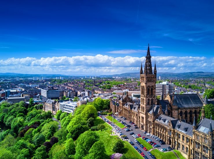 Para muitos visitantes, a Universidade de Glasgow parece algo saído de um romance de fantasia, com seus edifícios neogóticos surgindo no topo de uma colina, ostentando torres,..