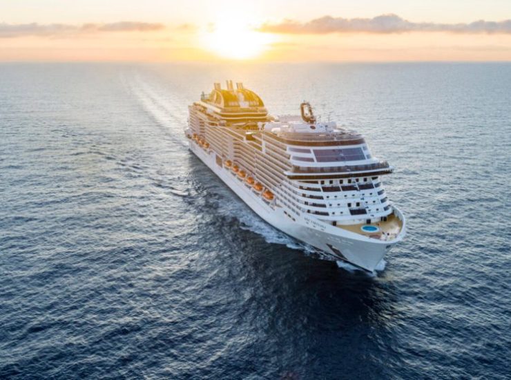 MSC Virtuosa, o mais recente navio emblemático da MSC Cruzeiros, chegou a Southampton, preparado para receber os passageiros à medida que os cruzeiros recomeçam no..