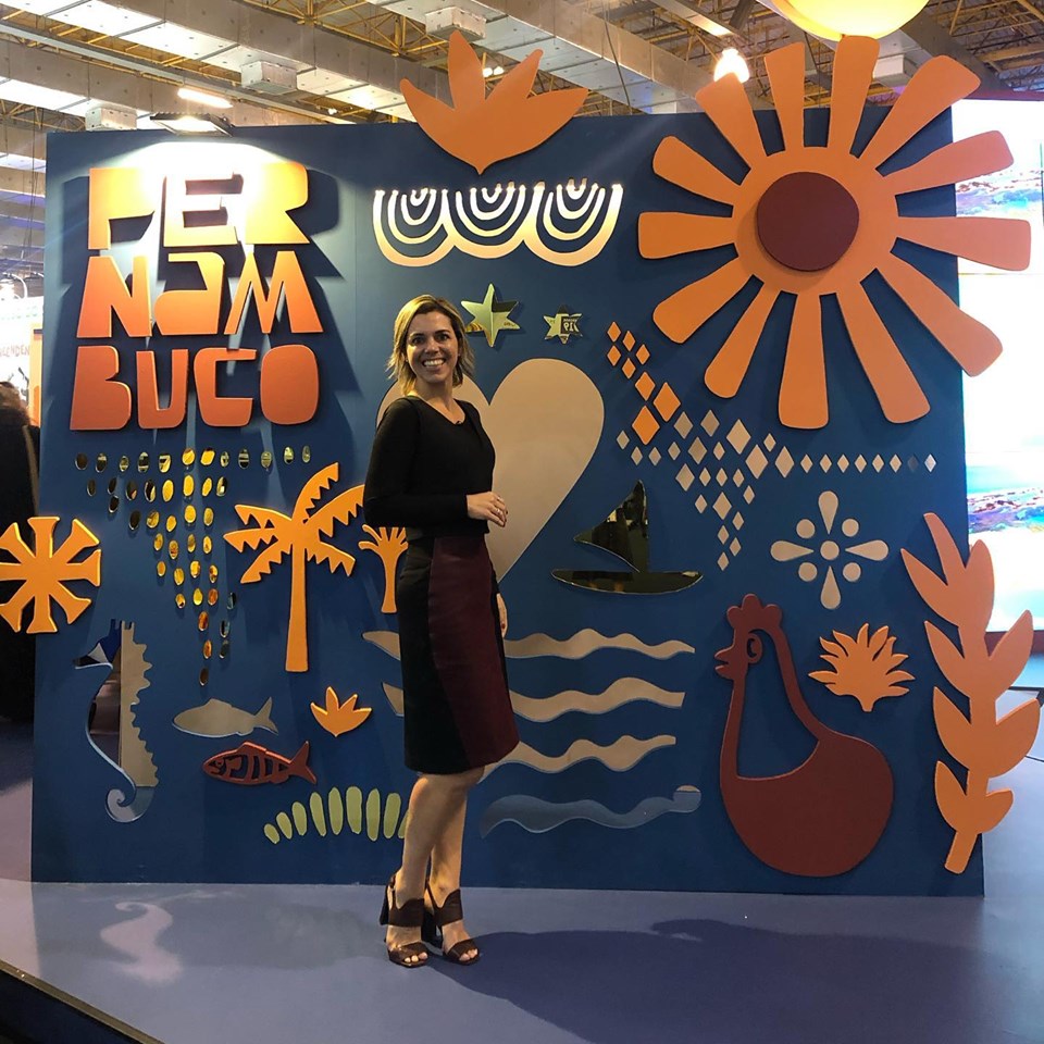 Aqui, o Estande de Pernambuco (ganhador do prêmio Criatividade de 2019, pela Brasil Travel News), sendo prestigiado pela gestora e  e sócia fundadora da Creative Learning Institute,  Roberta Miranda