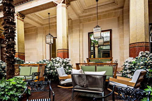 Ao todo, no Prince de Galles foram recriados os 115 apartamentos e as 44 suítes, nos quais se primou pela utilização de itens que reafirmassem o requinte do hotel, caso do mármore negro Saint Laurent, e das marcas Mobil Project e Craman Lagarde (mobiliário), Collection Pierre e JNL (poltronas), Delisle (luminárias), Pierre Frey e Zimmer and Rohde (tecidos) e Orient Impex e Parsua (tapetes). “Ao preservar o equilíbrio entre a história dos locais e a funcionalidade, pretendi fazer com que o Prince de Galles reencontre seu senso de hospitalidade sem transformar-se num museu. E também que este espaço térreo se torne aberto, vivo, luminoso e entre novamente em sintonia com a efervescência da vida parisiense”, disse Bruno Borrione sobre o famoso pátio em mosaico. No Prince de Galles é possível encontrar diárias por a partir de 496,00 euros.