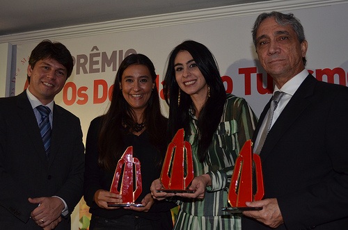 Bruno Herbert, do CV&B; Rafaela Marques, do Beto Carrero ao  centro, com Luciana Fernandes, da Empetur e agraciado da noite